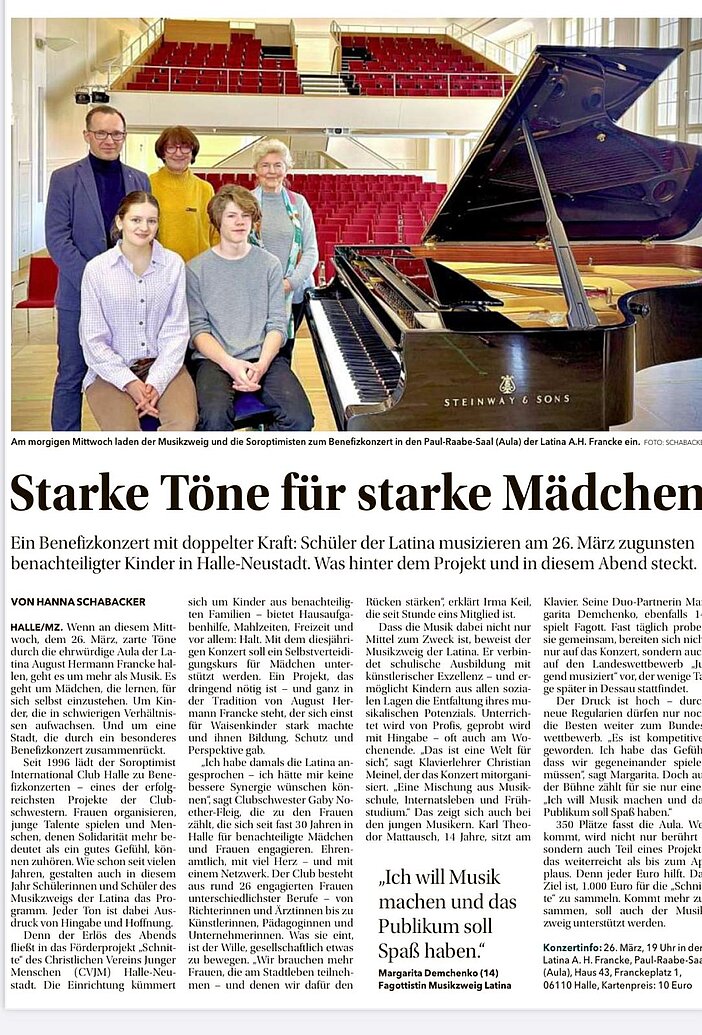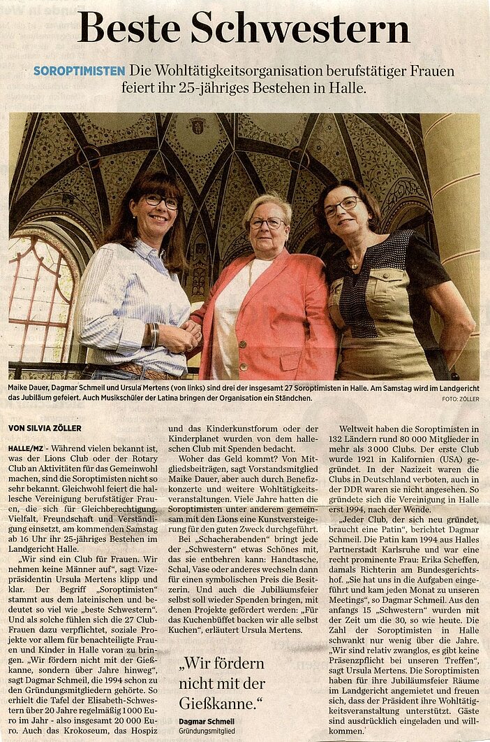 Der Halllenser Soroptimisten-Club lädt zur Festveranstaltung in die Aula der Martin-Luther-Universität anläßlich des 20-jährigen Bestehens ein.