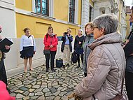 Die Clubschwestern aus Uelzen besuchen mit den Hallenserinnen die Leopoldina und das Händel-Museum. Die Mittagspause wird zu Gesprächen genutzt.